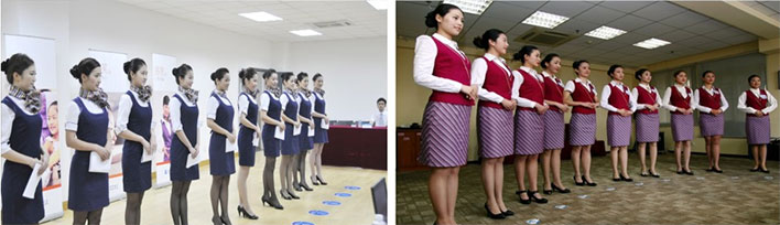 (2) 女生着裙装(裙子在膝盖上下3CM)或收身职业套装;