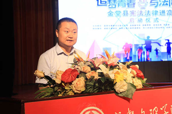 成都市司法局党组成员、政治部主任张勇,金堂县人大常委会副主任谢晓卉,成都文理学院党委副书记、副校长王亚军,西南交通大学希望学院党委副书记、副院长王彦,四川西南航空职业学院副院长苟平德,成都五月花高级技工学校副校长周宇等领导及金堂县县级相关部门的分管负责人和工作人员、高校学生代表参加了此次活动。