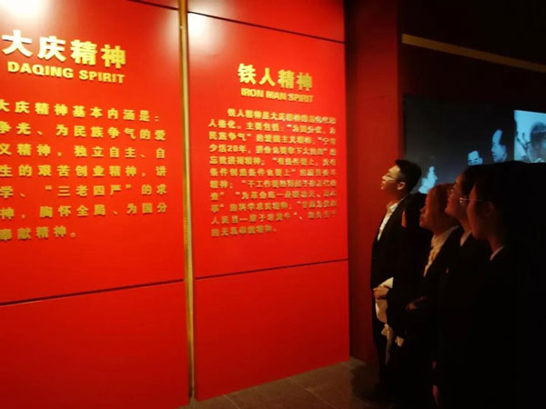 参观结束后,青年教师及学生们一起在纪念馆广场王进喜雕像下和一重展馆里重温入团、入党誓词。铿锵有力的宣誓声响彻广场和展馆,让所有人深受感染。青年人纷纷表示,要牢记誓词,坚定理想信念,明确人生目标,不忘初心,永远跟党走,做当代优秀的新青年,为中国梦注入青年军的强大力量。