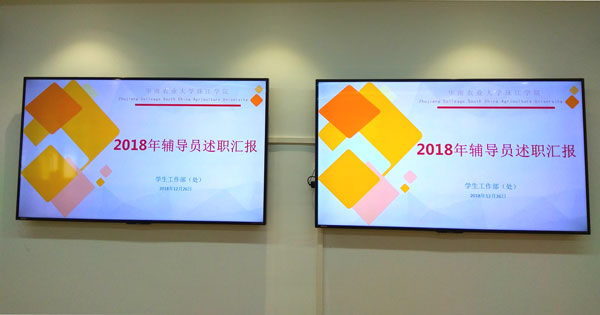 会议第二部分为2018年辅导员述职汇报会。评审会上,我校35名辅导员依次上台进行了述职汇报。他们从思想政治教育、年度绩效情况、学生管理与服务、学风建设、学生就业创业以及个人工作能力提升等方面,结合个人工作实际,总结了工作经验与不足,与大家分享了各自的工作理念、教育管理方法和职业感受。