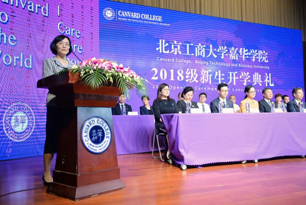 8时20分,随着党委书记张晓磊的郑重宣布,北京工商大学嘉华学院2018级新生开学典礼正式开始。