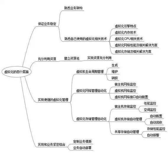 跟着虚拟化技能的老练和开展,虚拟化工程师要处理的疑问也阅历了四个层面: