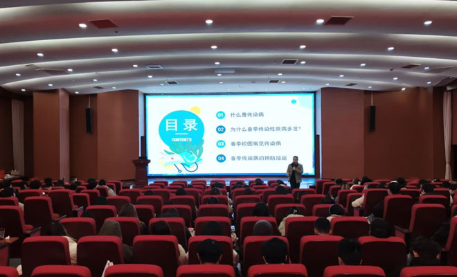 2月20日晚,我院在行政A楼五楼报告厅开展《春季传染病预防知识讲座》,为大家敲响了春季传染病预防的警钟,普及健康知识、提升师生防范意识。