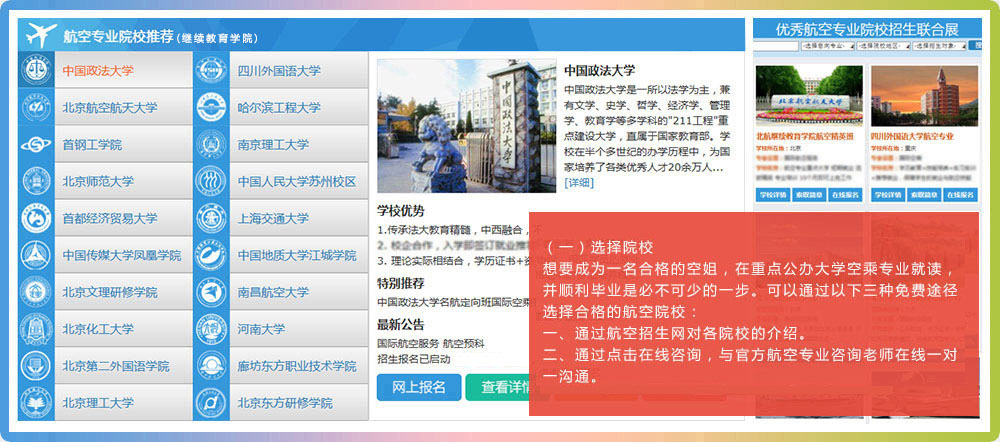 学校优势:校企合作,实行一体化办学,为学生提供全方位的航空职业培训服务