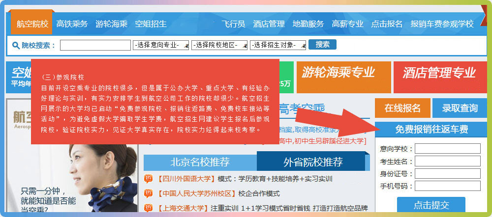 专业设置:空姐/空哥,高铁乘务,地勤服务,酒店管理,邮轮海乘